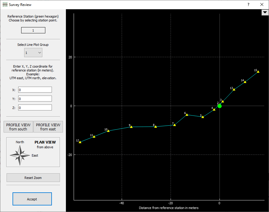 Although the onboard processor handles some basic filtering of the incoming LIDAR and position data during scanning, it doesn't have the capacity to generate the point cloud. That is performed using the CAVEATRON PROCESS application. The first step is to generate an X, Y, Z coordinate file from the station survey file. The file can be loaded directly into CAVEATRON PROCESS and the line plot can be viewed and reference stations and global coordinates set. If the survey contains loop closures or multiple surveys are involved, it is highly recommended to use Walls Cave Mapping Software. The survey file can be directly loaded into Walls for processing and a function in Walls generates the necessary X, Y, Z coordinate file to load back into CAVEATRON PROCESS.